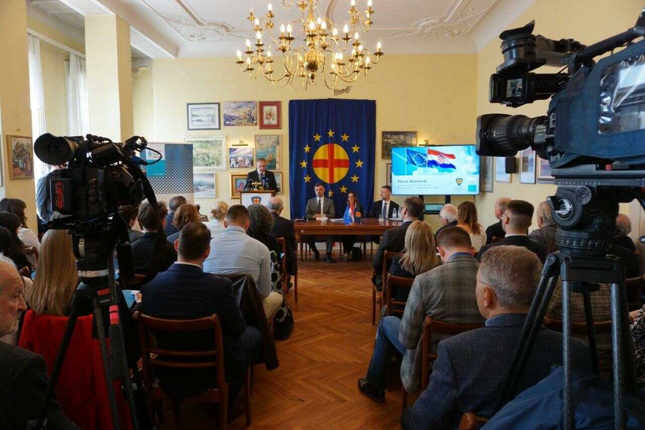 Potpredsjednik Vlade Davor Božinović u svojem je izlaganju iznio pregled ključnih procesa, događaja i odluka koje su obilježili desetogodišnje članstvo Republike Hrvatske u Europskoj uniji. Poručio je kako Hrvatska ima jasnu viziju svoga članstva koja se zasniva na čvrstom opredjeljenju za europske kulturološke sastavnice, mogućnost za jačanje gospodarstva, očuvanje sigurnosti i europskog zajedništva. Osobit je naglasak izlaganja stavljen na ulazak Hrvatske u šengensku zonu i primanje zajedničke europske valute, nove trgovinske mogućnosti, smanjenje stope inflacije i niže kamatne stope. Potpredsjednik Vlade spomenuo je i važnost paneuropskoga karaktera odluka u novodobnim sigurnosnim i migracijskim prilikama europskog društva. Kao jednu od najvećih uspješnica hrvatske suradnje s Europskom unijom naveo je izgradnju Pelješkog mosta, čime je ostvaren san povezivanja čitava teritorija Republike Hrvatske. Imajući na umu nedavnu tragičnu stvarnost Domovinskoga rata, poručio je kako je potrebno biti čvrsta potpora Ukrajini u borbi protiv ruske agresije.