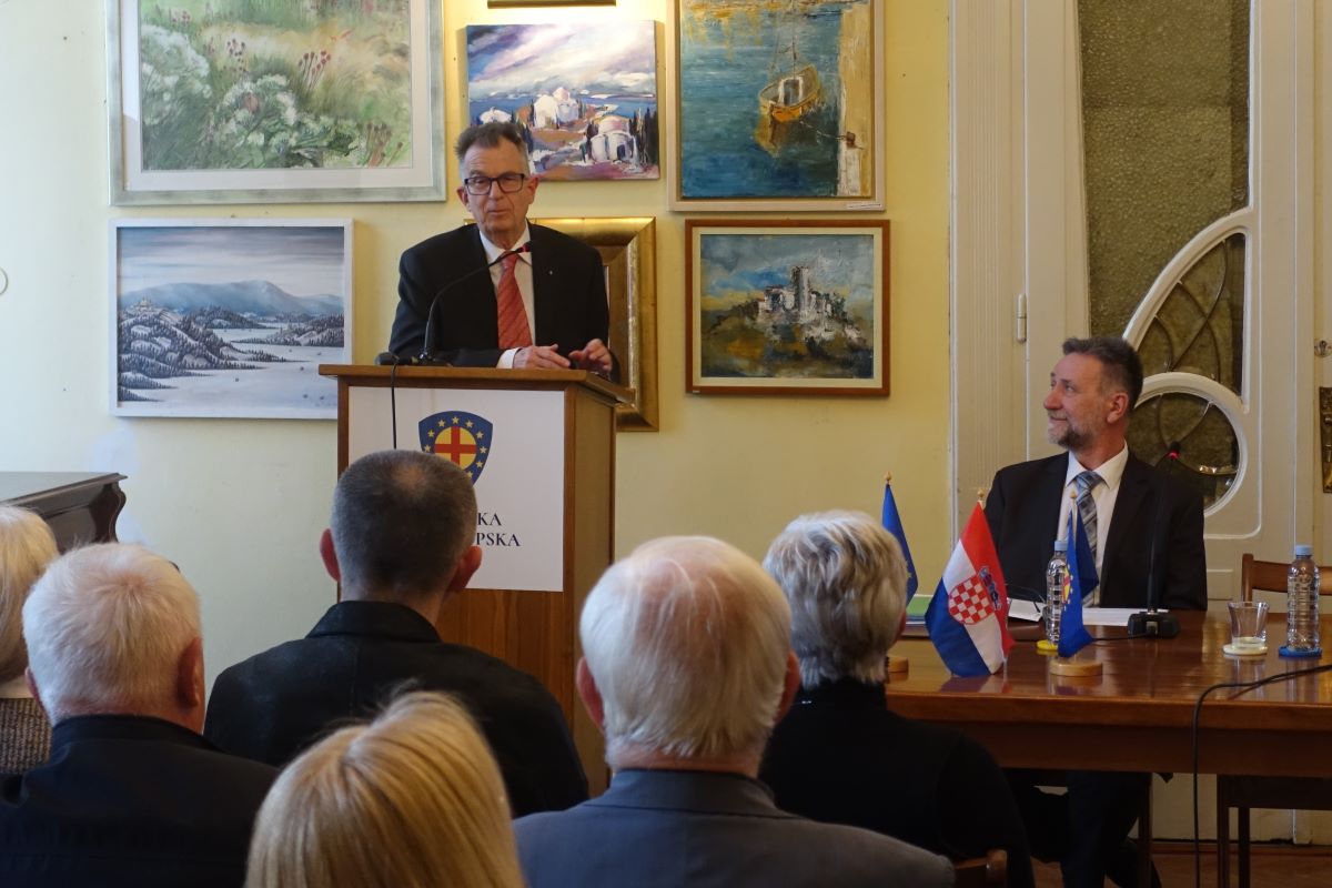 U izlaganju je također istaknuta posebna povezanost Ivana Pavla II. s hrvatskim narodom i Hrvatskom. Podsjećajući na njegovu blizinu Hrvatskoj u prijelomnim povijesnim trenutcima, prof. Marin naglasio je kako je papa razumio hrvatsku težnju za slobodom i samostalnošću te kako je njegova potpora ostavila dubok trag u hrvatskoj kolektivnoj memoriji. U tom je kontekstu dodatno osvijetljen i širi diplomatski značaj njegove službe, koja je dosljedno povezivala duhovni autoritet, obranu mira i zauzimanje za dostojanstvo svakoga naroda.