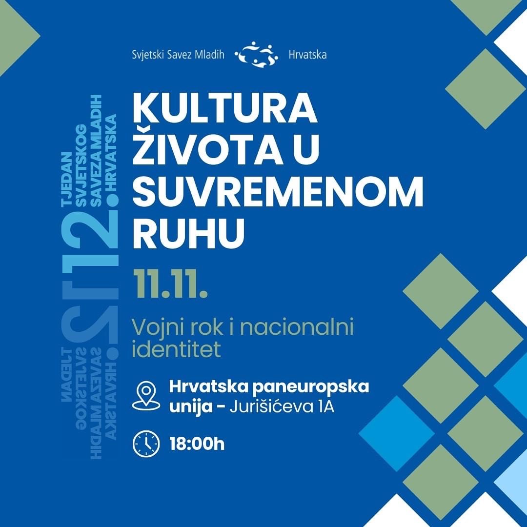 Svjetski savez mladih Hrvatska i Hrvatska paneuropska unija organiziraju u ponedjeljak, 11. studenoga 2024. u 18 sati okrugli stol „Vojni rok nacionalna sigurnost – država za koju se vrijedi boriti”.