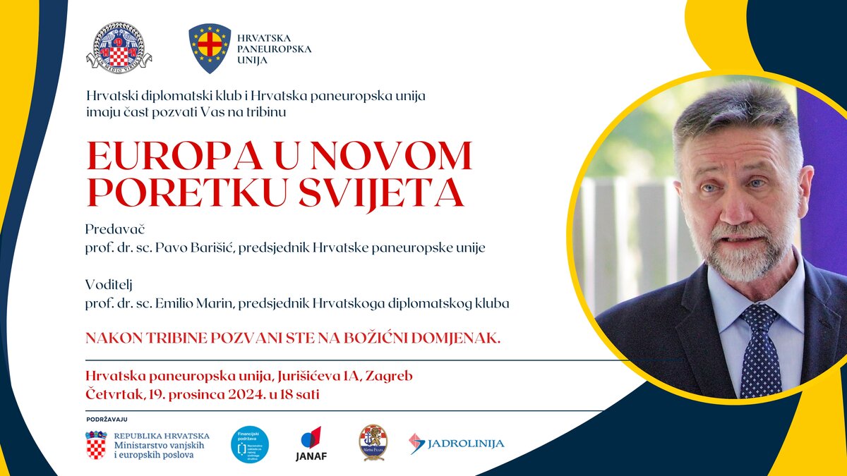 Tribina će se održati u četvrtak, 19. prosinca 2024., s početkom u 18 sati, u prostorijama Hrvatske paneuropske unije u Zagrebu.