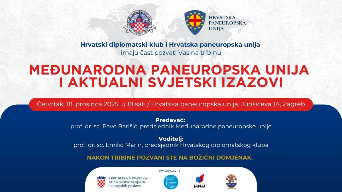 Hrvatska paneuropska unija i Hrvatski diplomatski klub organiziraju tribinu te tradicionalno predbožićno druženje.