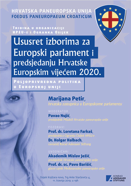 Hrvatska paneuropska unija - Ogranak Osijek organizira u četvrtak, 11. travnja 2019., tribinu Marijane Petir.