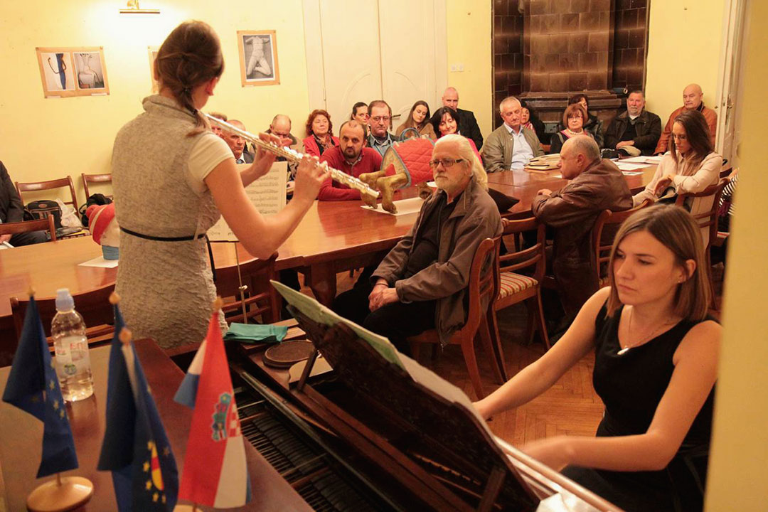 Izložba skulptura Nikole Pečka „Tragovi čovjeka” otvorena je 12. studenog 2014. u HPEU.