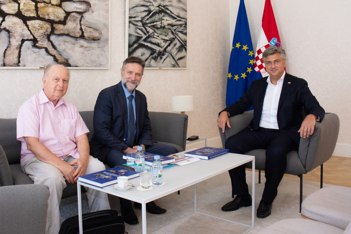 Urednici spomenice Hrvatska paneuropska unija - Trideset i tri godine rada - 1991. - 2024., Mislav Ježić i Pavo Barišić, uručili su 23. kolovoza 2024. tiskani primjerak knjige predsjedniku Vlade Andreju Plenkoviću.