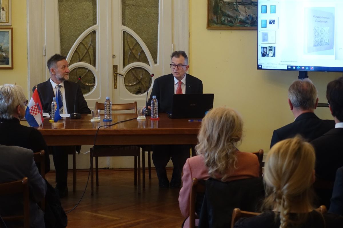 Središnje izlaganje održao je prof. emeritus Emilio Marin, bivši veleposlanik Republike Hrvatske pri Svetoj Stolici od 2004. do 2011. godine i član Papinskoga odbora za povijesne znanosti. Predstavljajući predavača, prof. Barišić podsjetio je na njegov bogat znanstveni, kulturni i diplomatski opus te na izniman doprinos hrvatskoj znanosti, međunarodnoj kulturnoj suradnji i hrvatskoj diplomaciji. Kao ugledni znanstvenik i diplomat, prof. Marin svojim je predavanjem pružio i stručno i osobno utemeljeno viđenje pontifikata Ivana Pavla II. te njegova značenja za Europu i suvremeni svijet.
